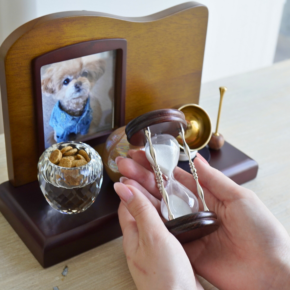 寵物骨灰時光沙漏,是將毛孩珍貴的骨灰經過特殊加工,轉化為細緻的流沙,製作而成的專屬紀念品。隨著細沙一點一滴緩緩流動,每一次翻轉,都是一段靜靜流逝的時間,也成為世界上獨一無二、無法複製的存在。