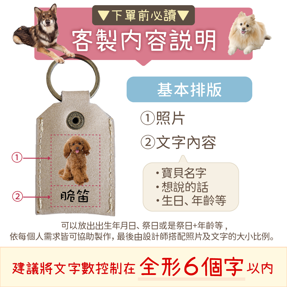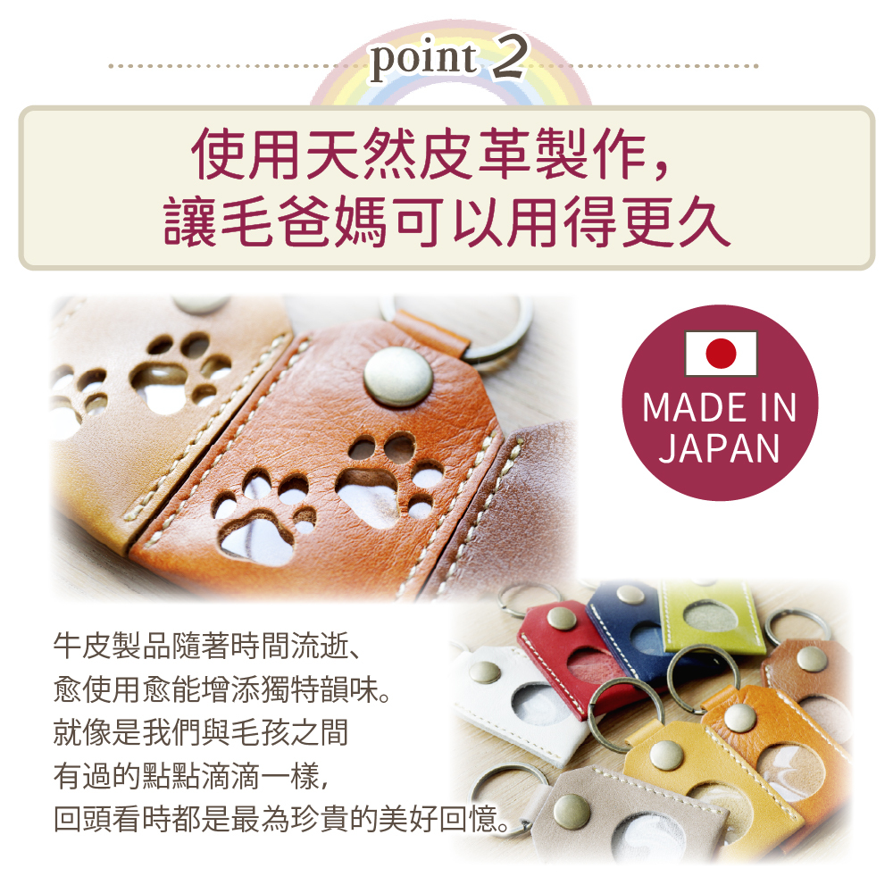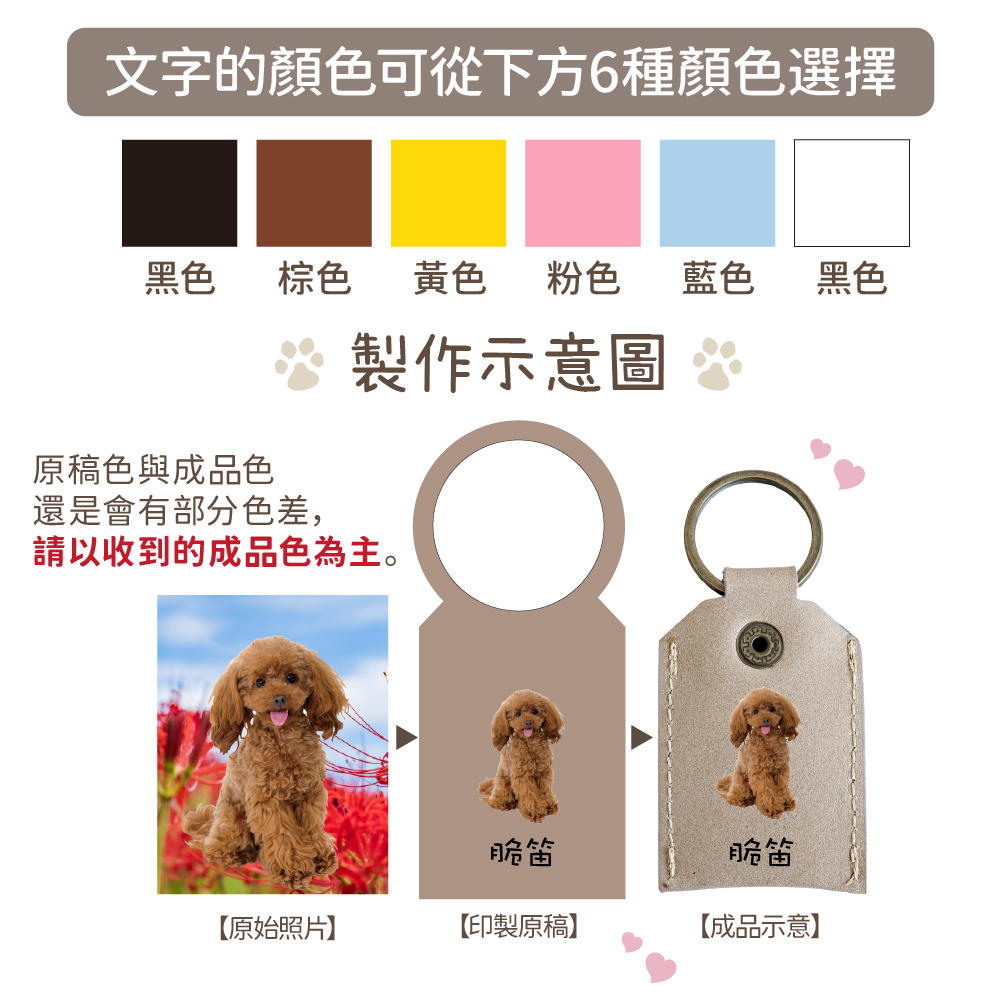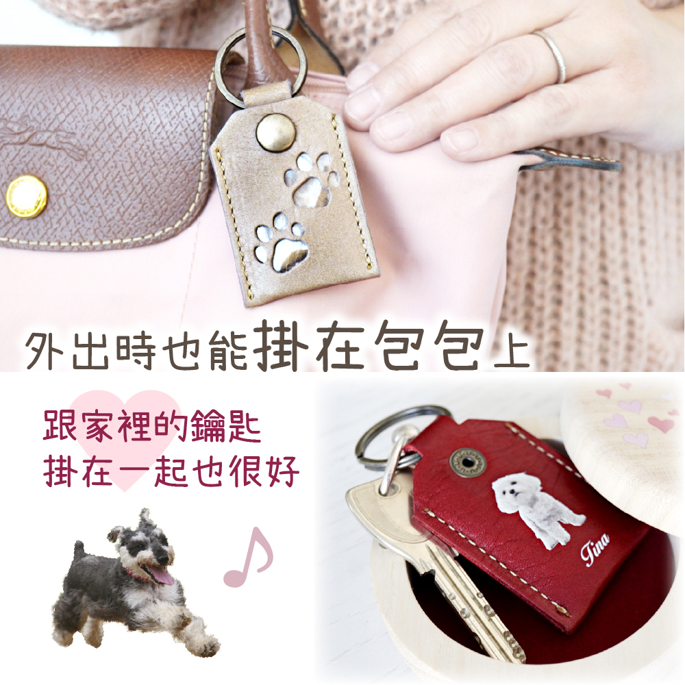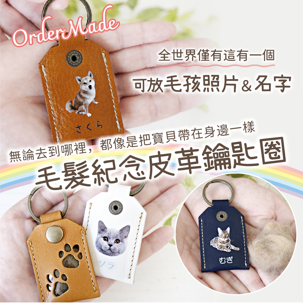 ・使用特殊印刷將心愛的毛孩照片永遠保留在皮革鑰匙圈上,打造獨一無二的專屬紀念小物