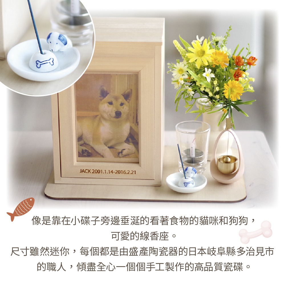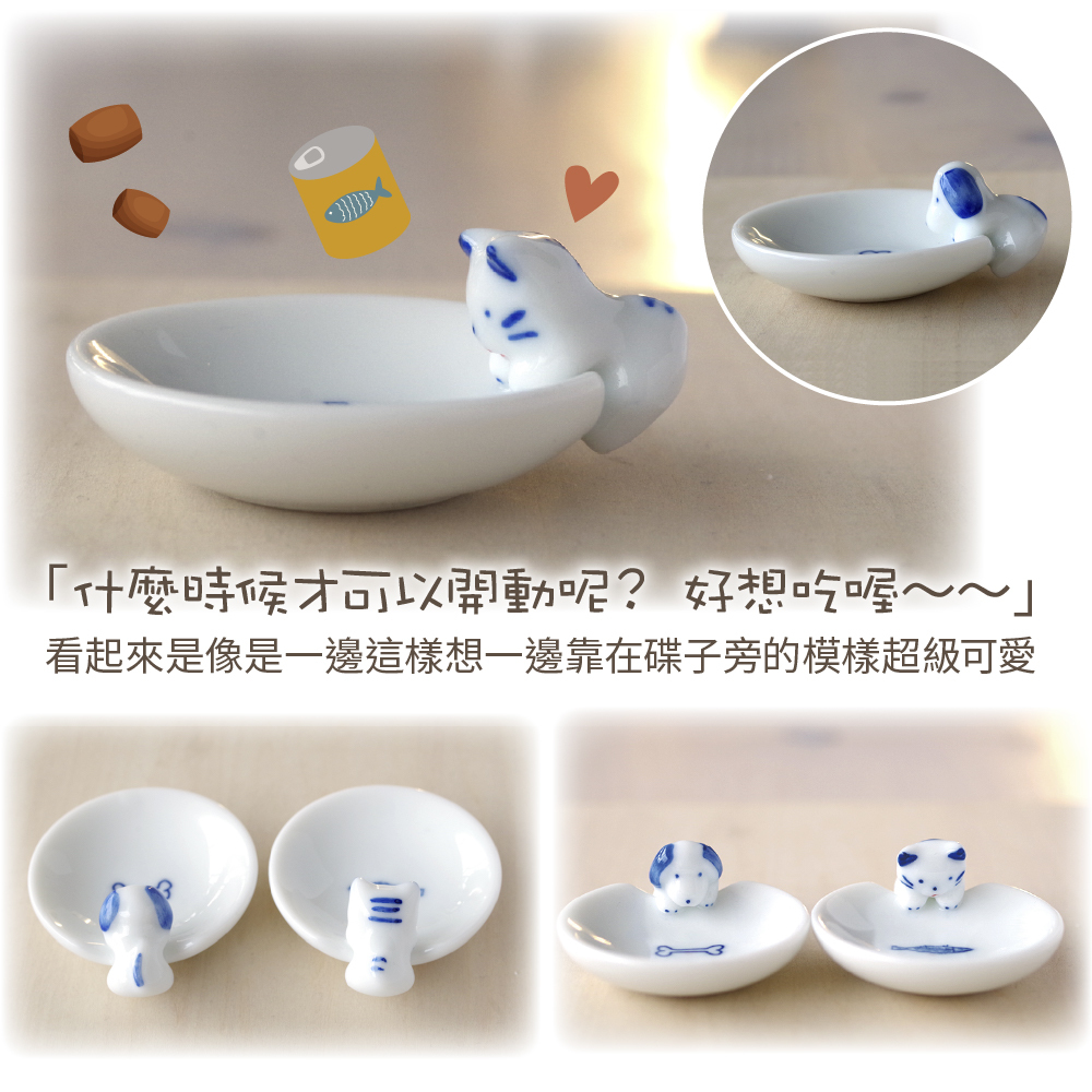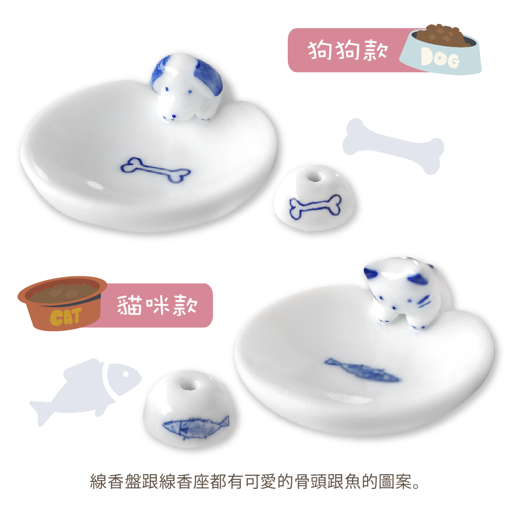 貓咪和狗狗趴在碟子旁等飯飯吃的造型線香座