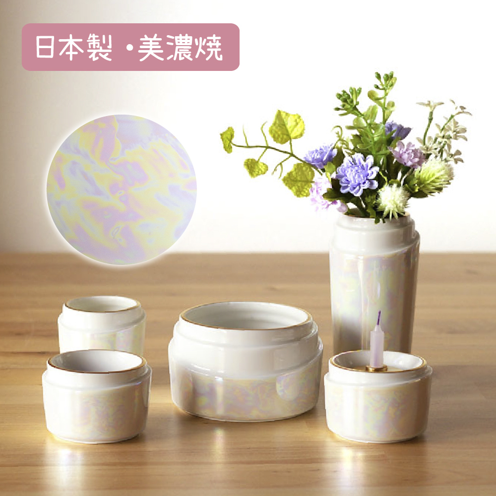 特殊虹彩釉窯燒的日本美濃燒祈念用具組