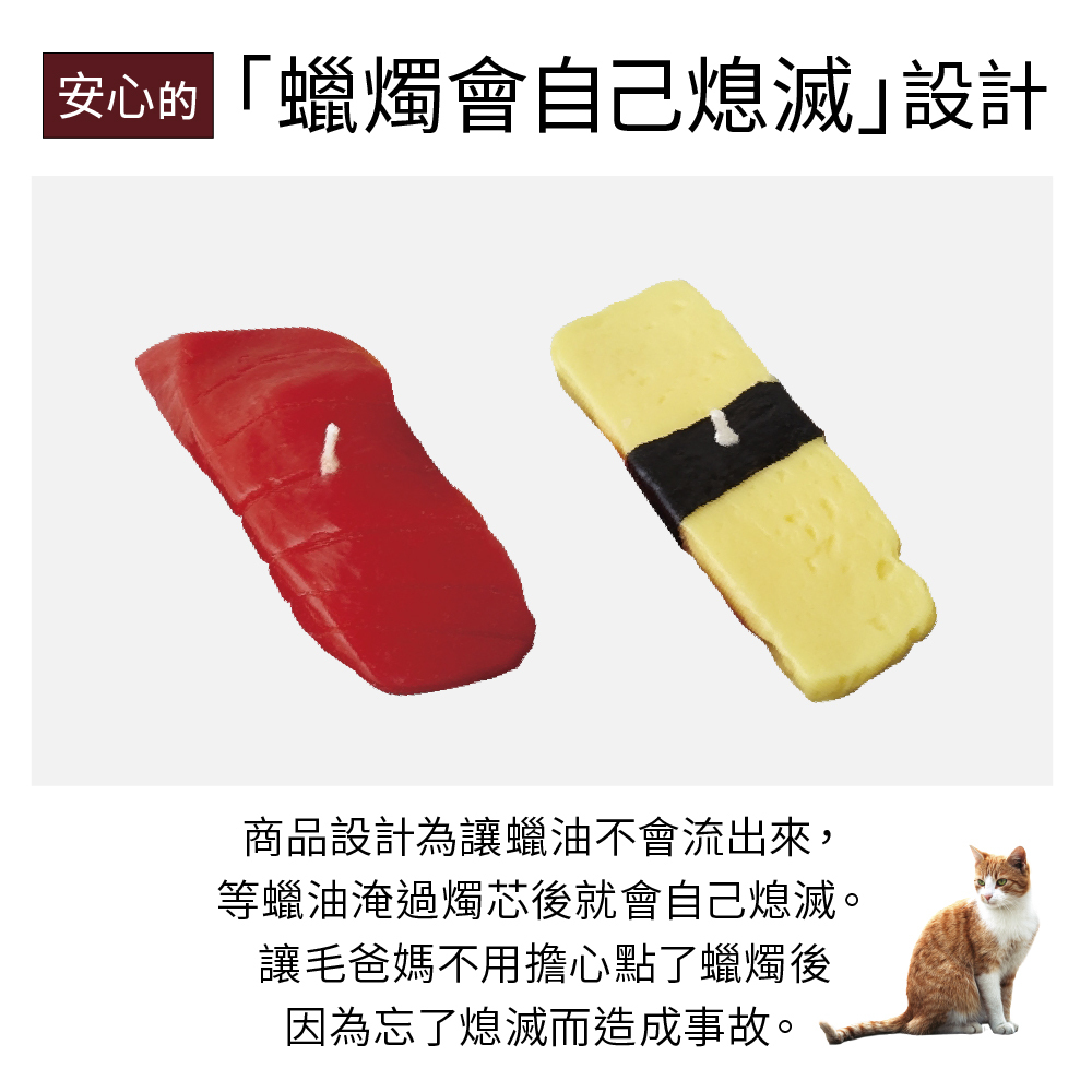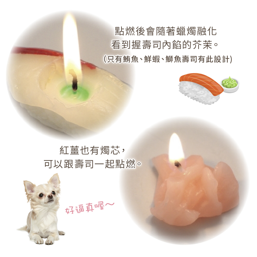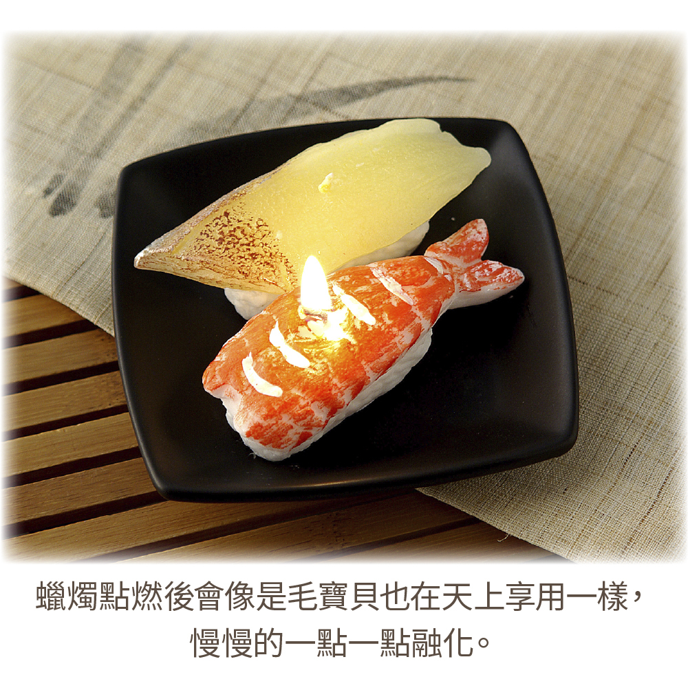 ・隨著蠟燭燃燒,可以看到握壽司裡芥茉的講究設計