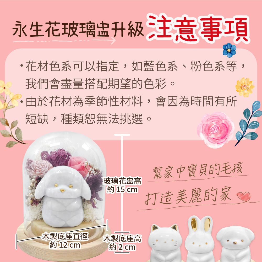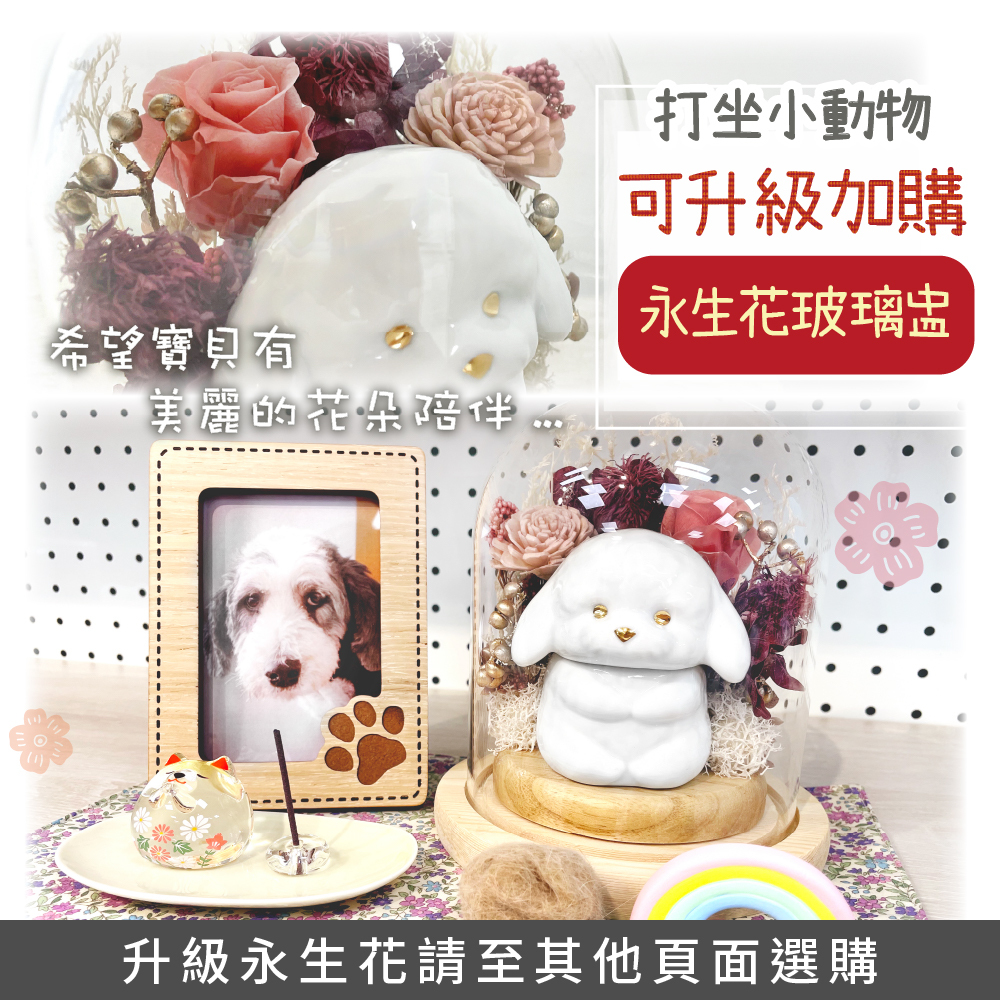 ※現在可以加購升級花盅服務囉~讓毛孩被美麗的花朵圍繞,用永生花來點綴可愛的小動物骨灰罐(預加購者請看下方商品說明)