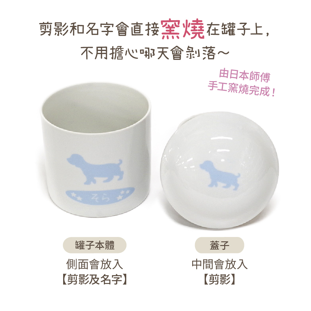 有可愛動物剪影可放毛孩名字的寵物骨灰罈