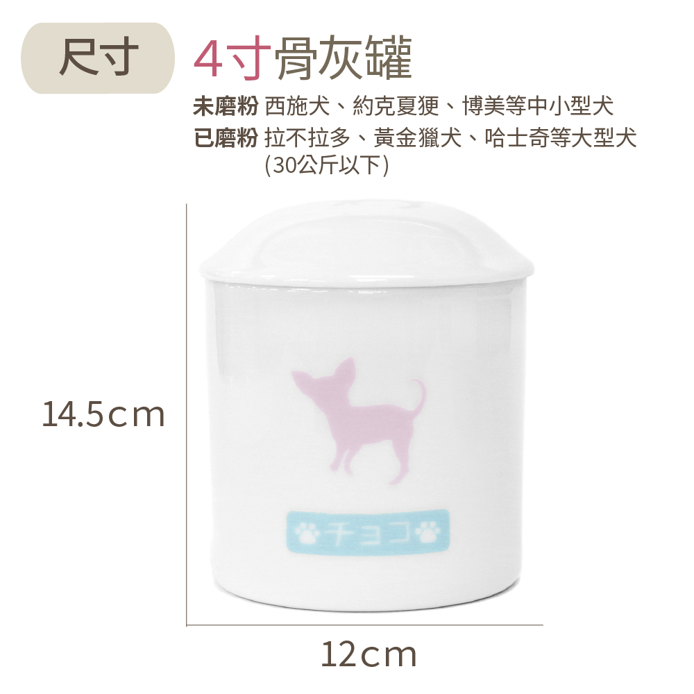 ※因名字是直接燒在骨灰罐上,只能接受英文的名字