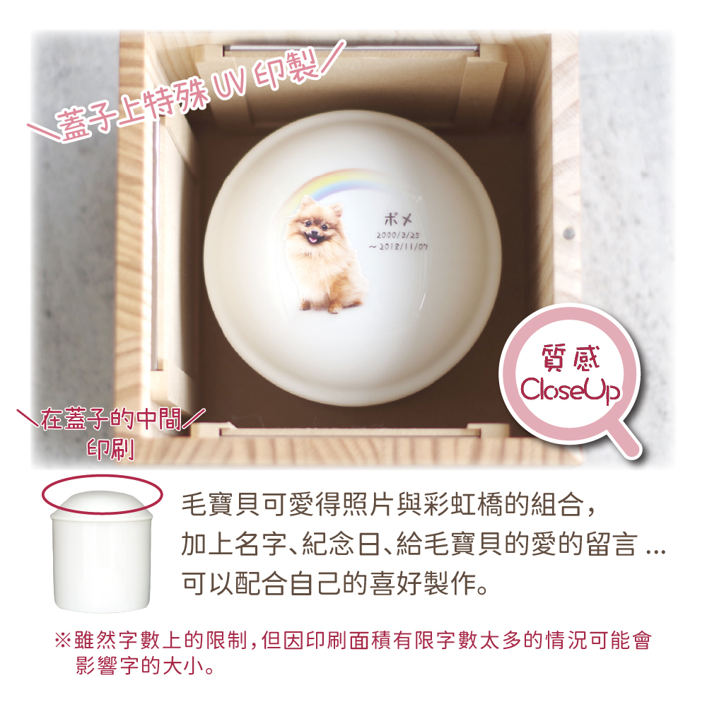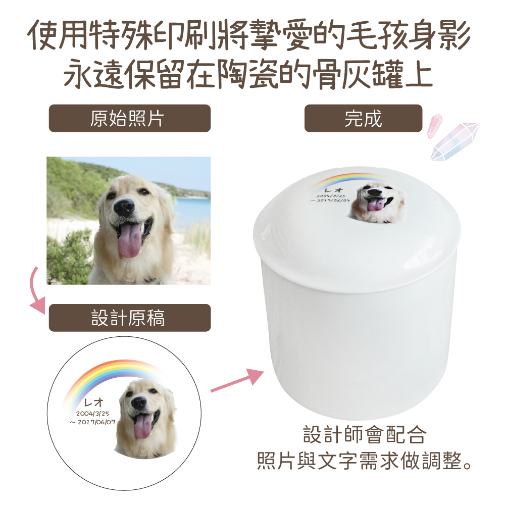 將可愛的毛孩身影印製在骨灰罐的蓋子上,