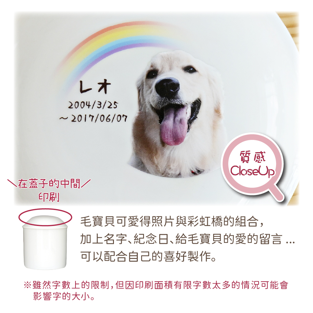 將可愛的毛孩身影印製在骨灰罐的蓋子上,