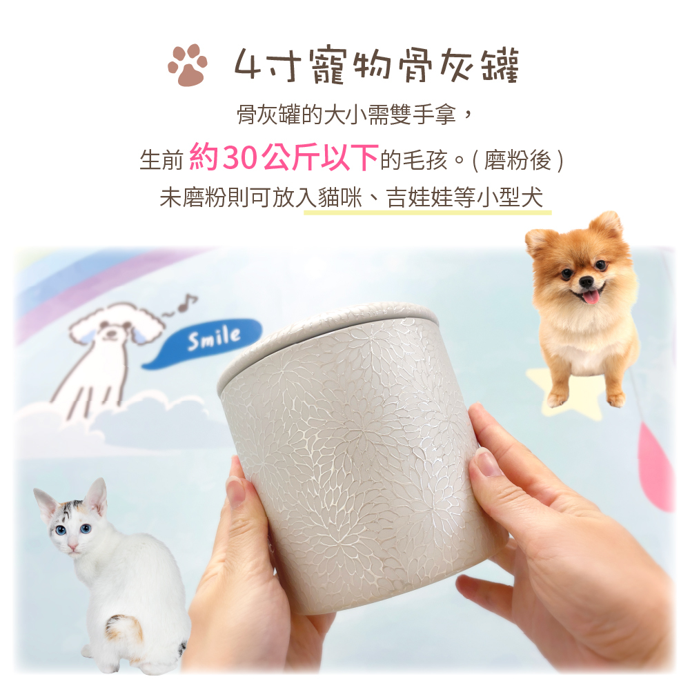 ・適合火化且有磨粉,生前體重約30公斤以下的毛孩