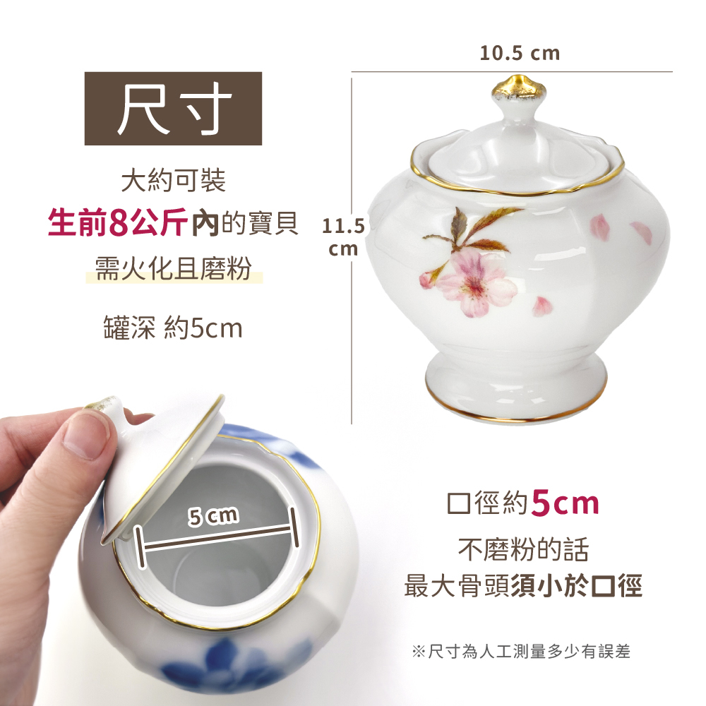 ・約2.5寸大小,適合生前體重約8公斤以下的毛孩