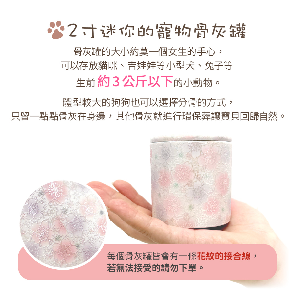 ・適合火化且有磨粉,生前體重約3公斤以下的毛孩