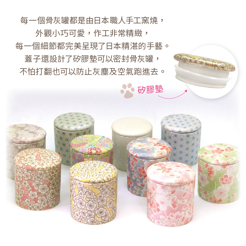 日本美濃燒防潮寵物骨灰罐(2寸)(3公斤以下)花滿芳華