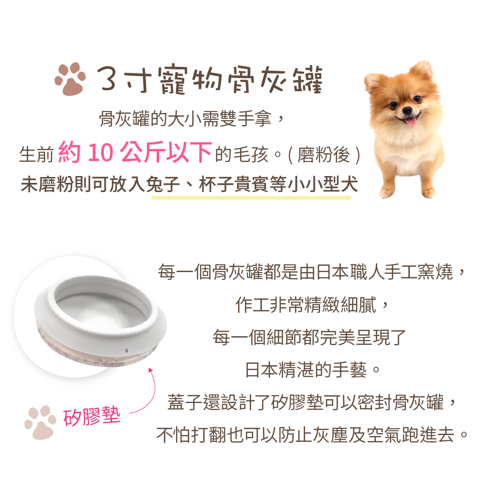 ・適合火化且有磨粉,生前體重約10公斤以下的毛孩