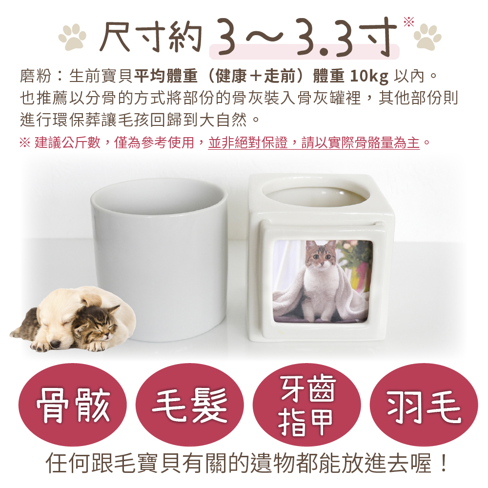 ・3~3.3吋大小,適合健康時10kg~13kg以下毛孩或存放牙齒、毛髮等遺物。