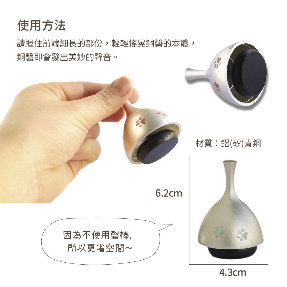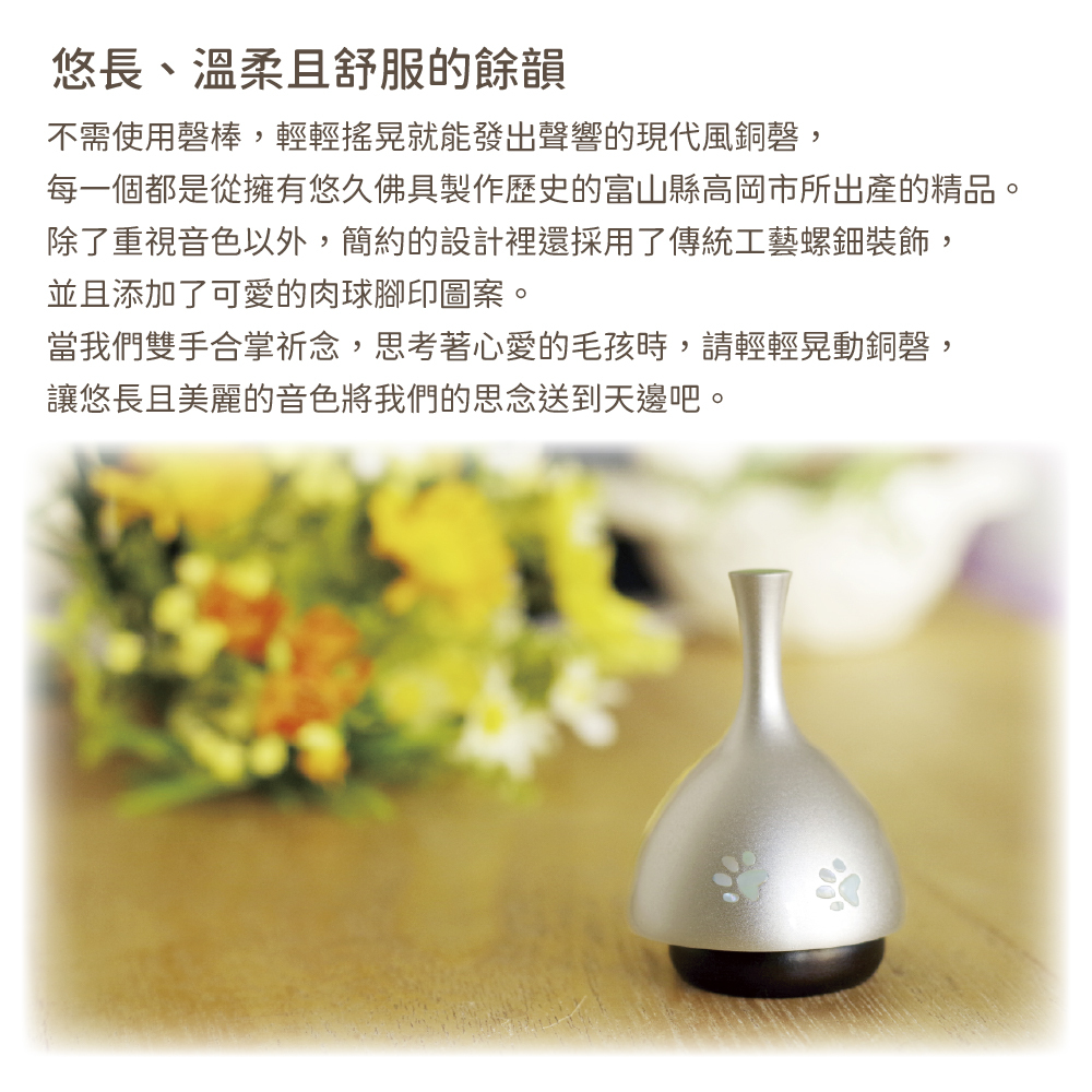 ・音色清澄,讓您在每天祈念時刻,透過悠揚鐘響傳達對毛孩的思念。