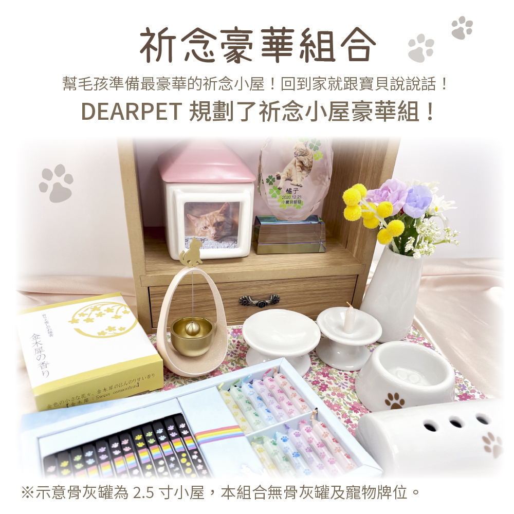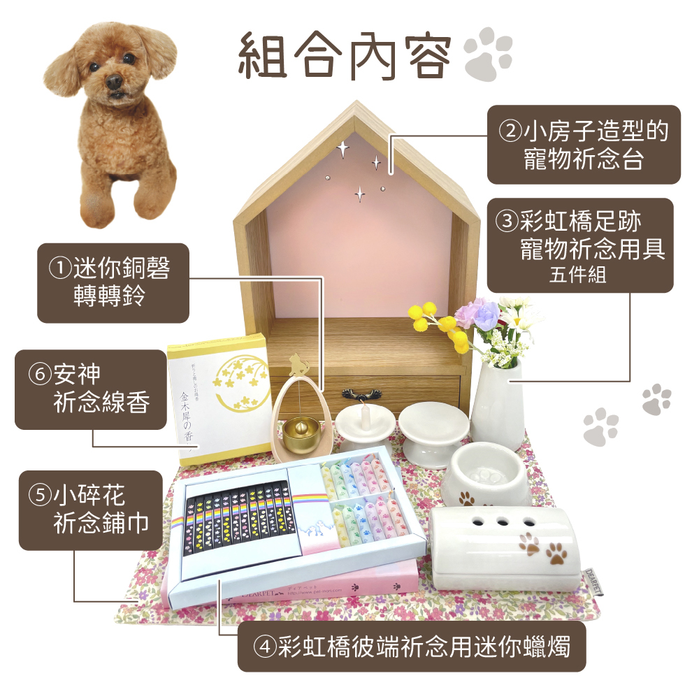 ・豪華組合內含可愛的轉轉鈴銅磬、神龕、祈念用具及線香蠟燭
