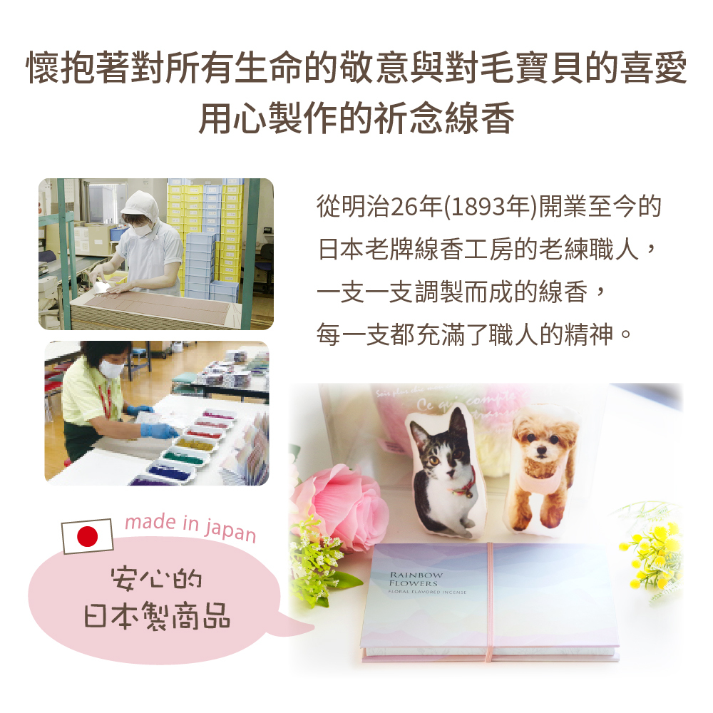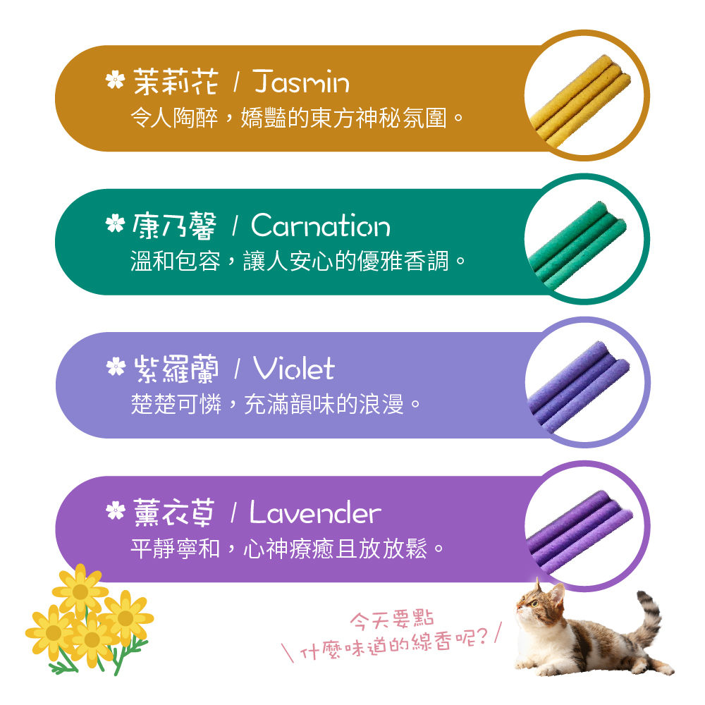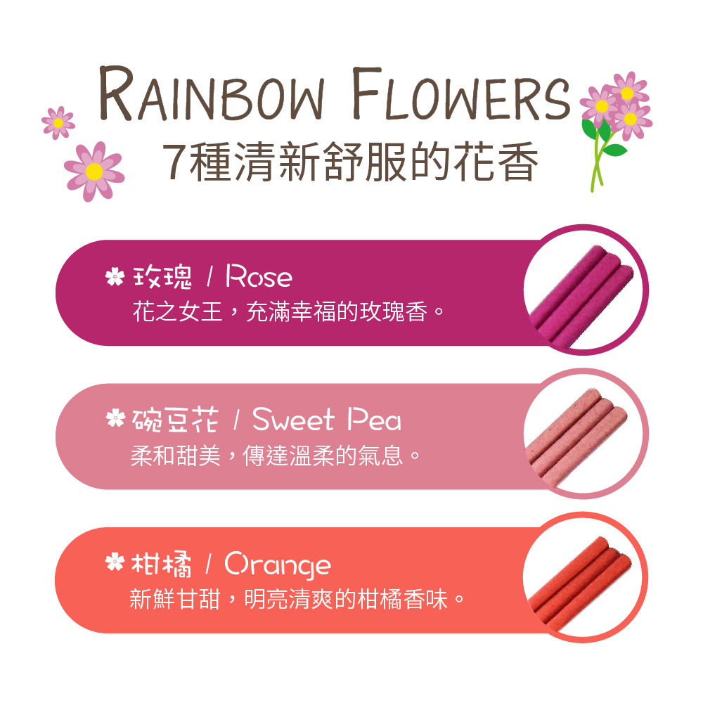 可配合季節或心情點燃不同口味的7色祈念線香