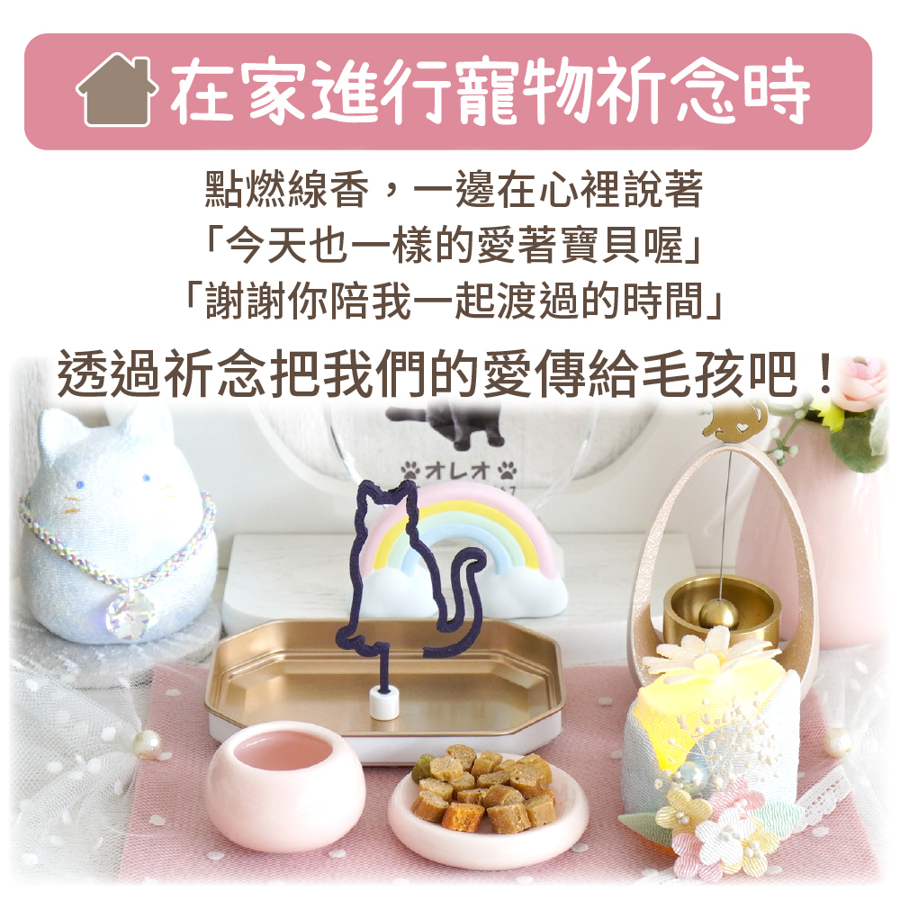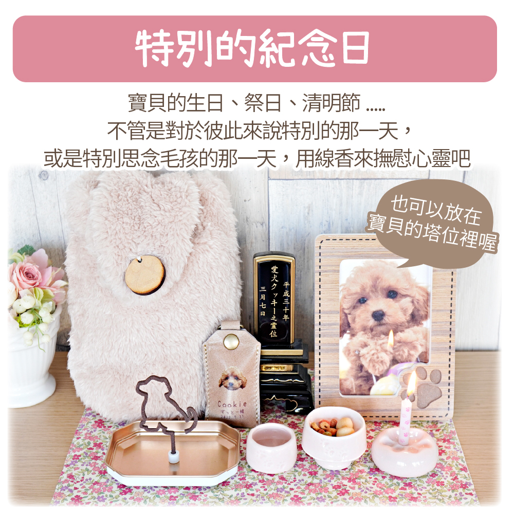 用超可愛毛孩造型的祈念線香來點綴祈念小屋