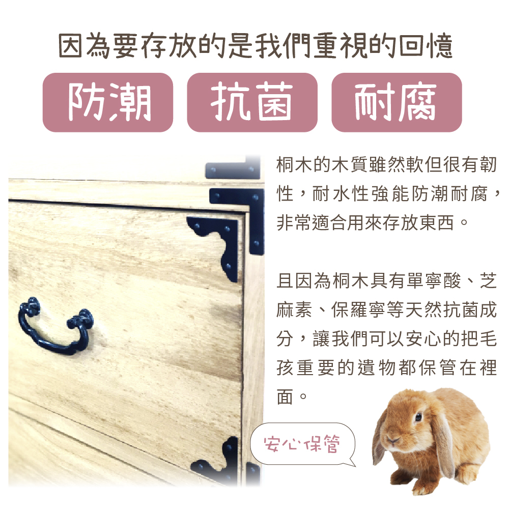 ・桐木製作的盒子防潮耐腐,非常適合用來保存毛孩的遺物
