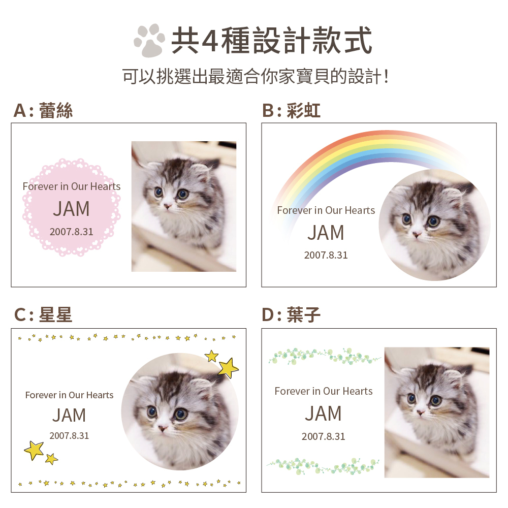 4種款式X8種字型可挑選