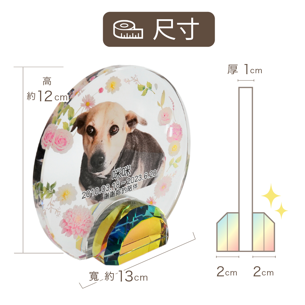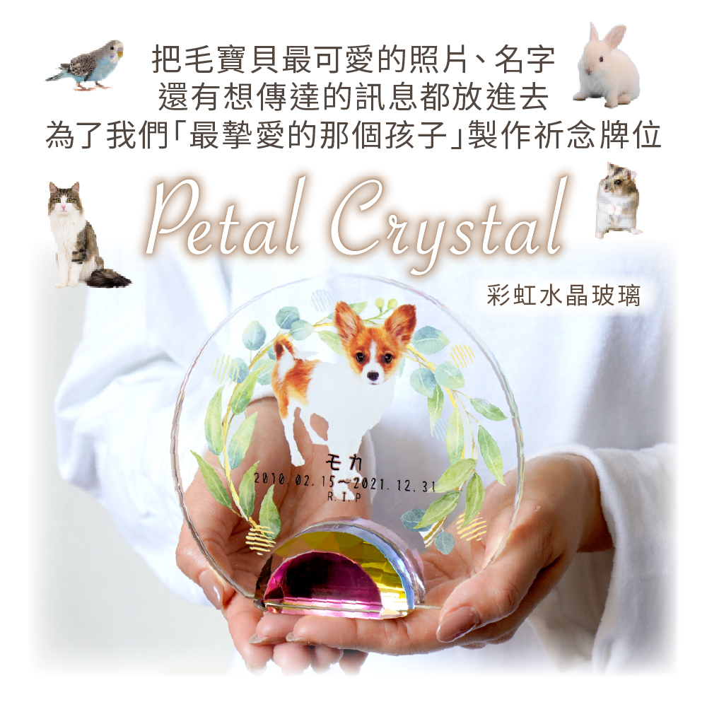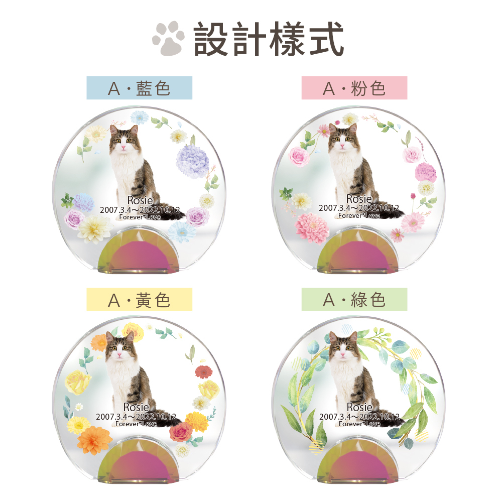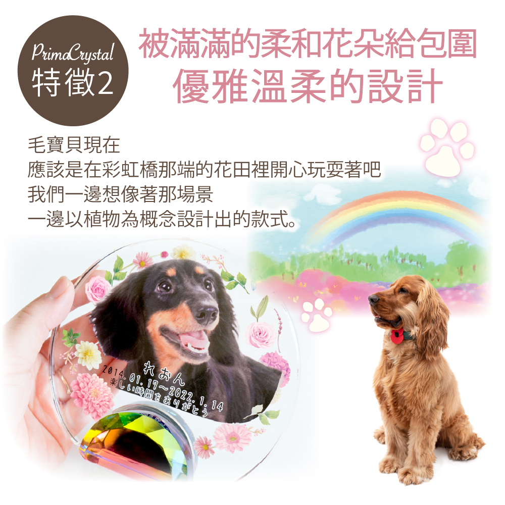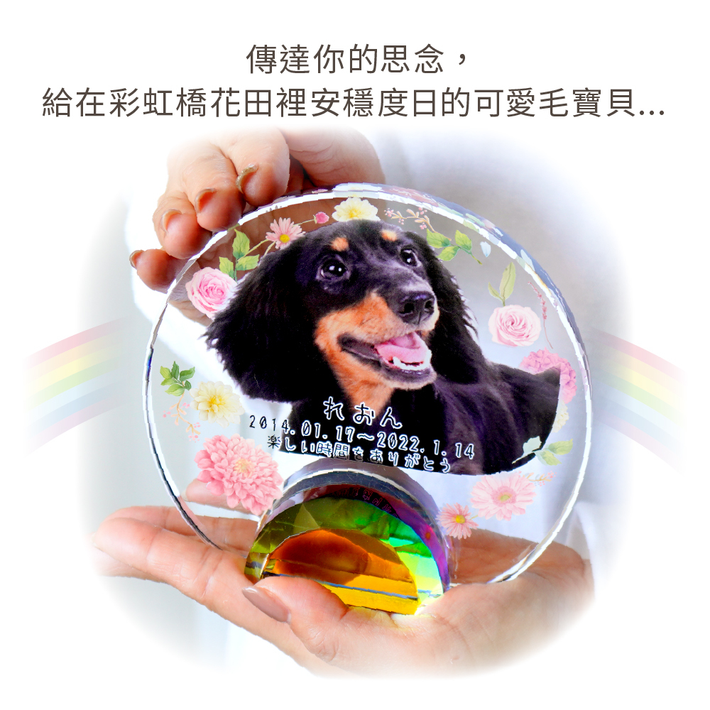 以彩虹橋的花田為設計理念,可放入毛寶貝照片的祈念牌位。