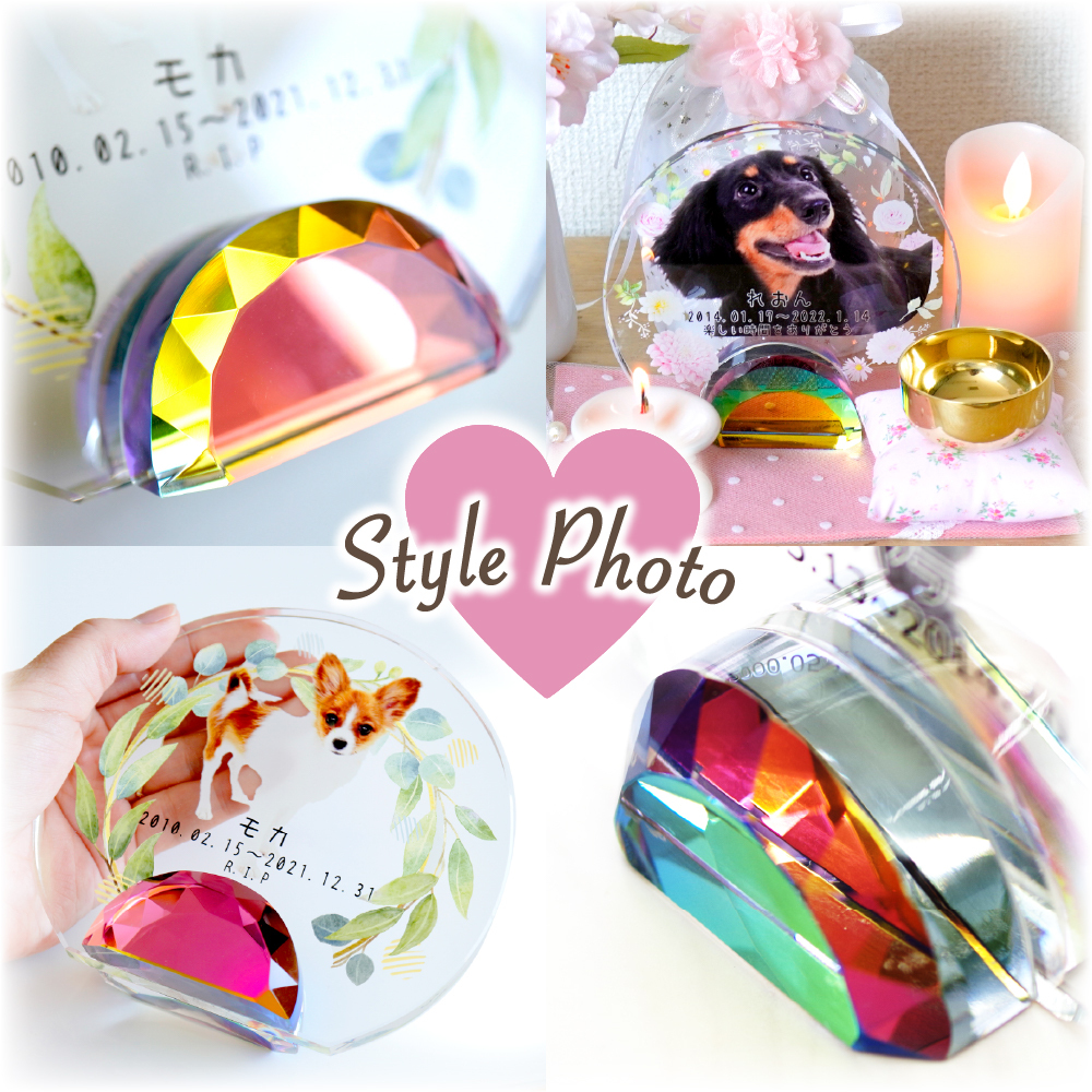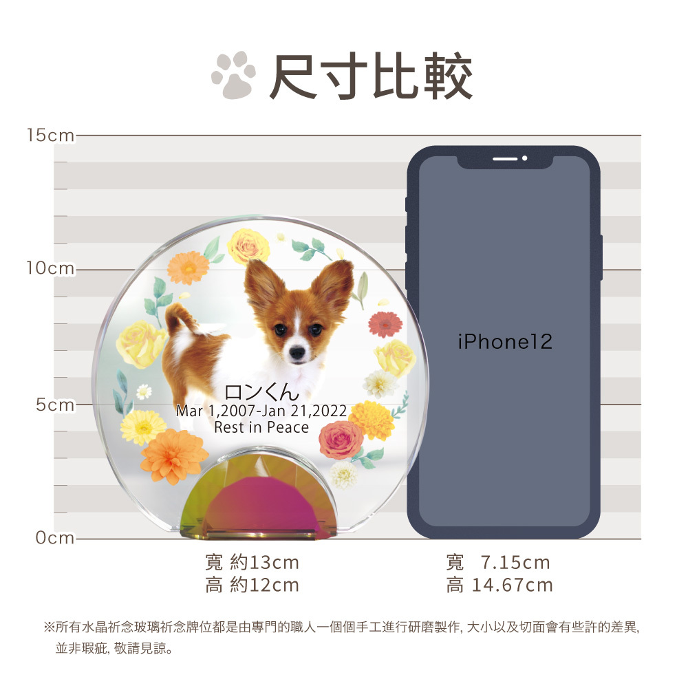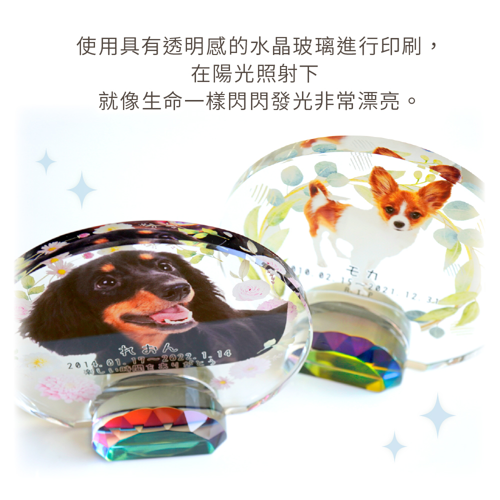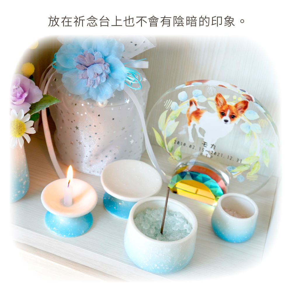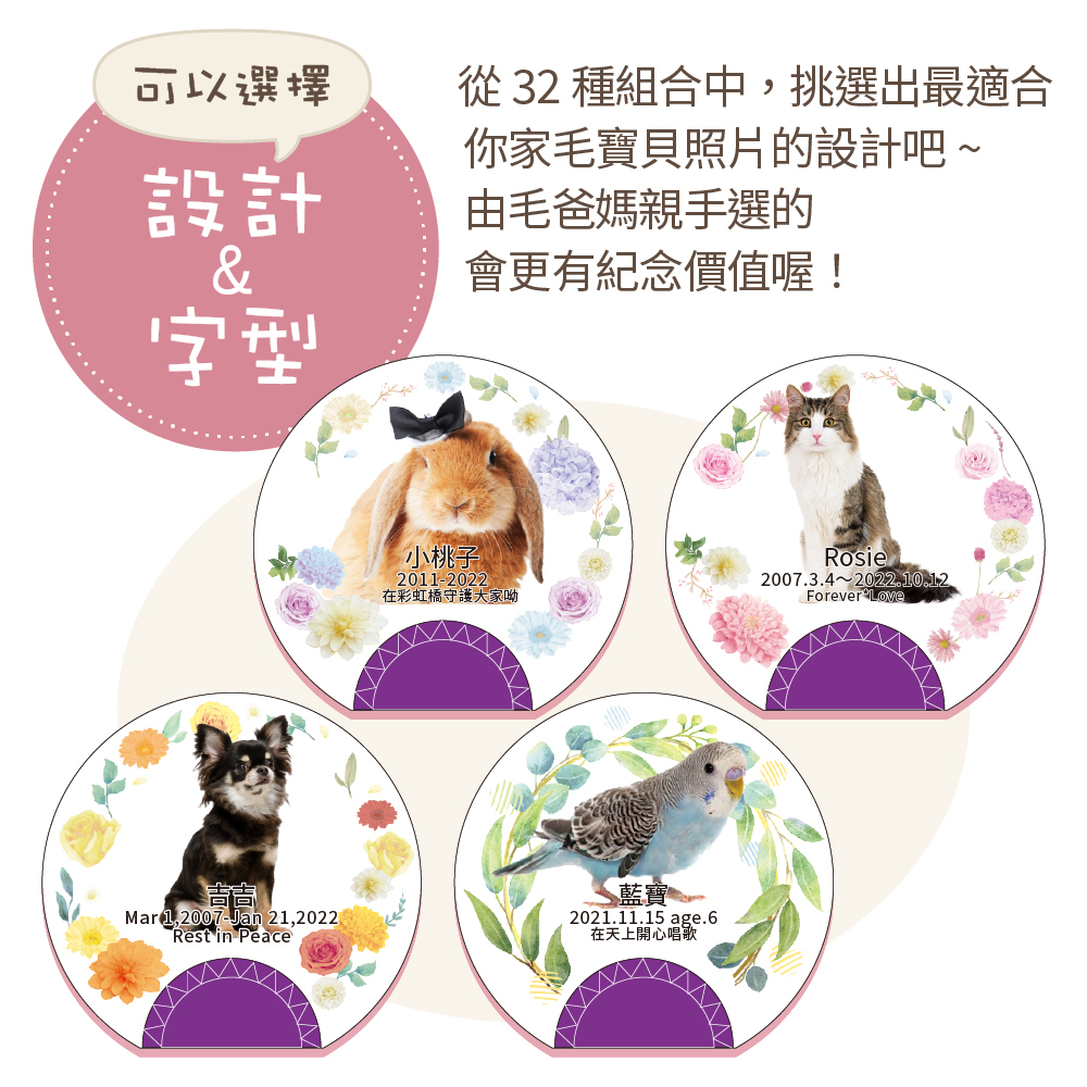 以彩虹橋的花田為設計理念,可放入毛寶貝照片的祈念牌位。