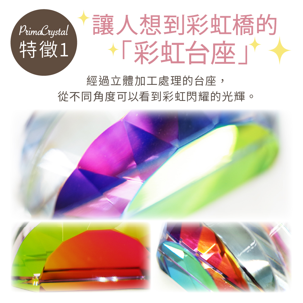 ・特殊立體加工處理的底座不同角度可欣賞不同的虹彩光芒