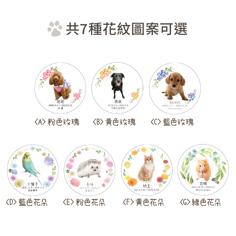 7種花紋X8種字型可挑選