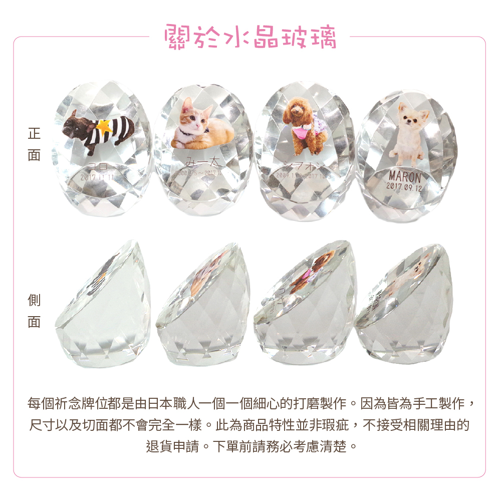 ※水晶牌位皆在日本製作後寄出,原稿確認後約需15~20個工作天方可出貨