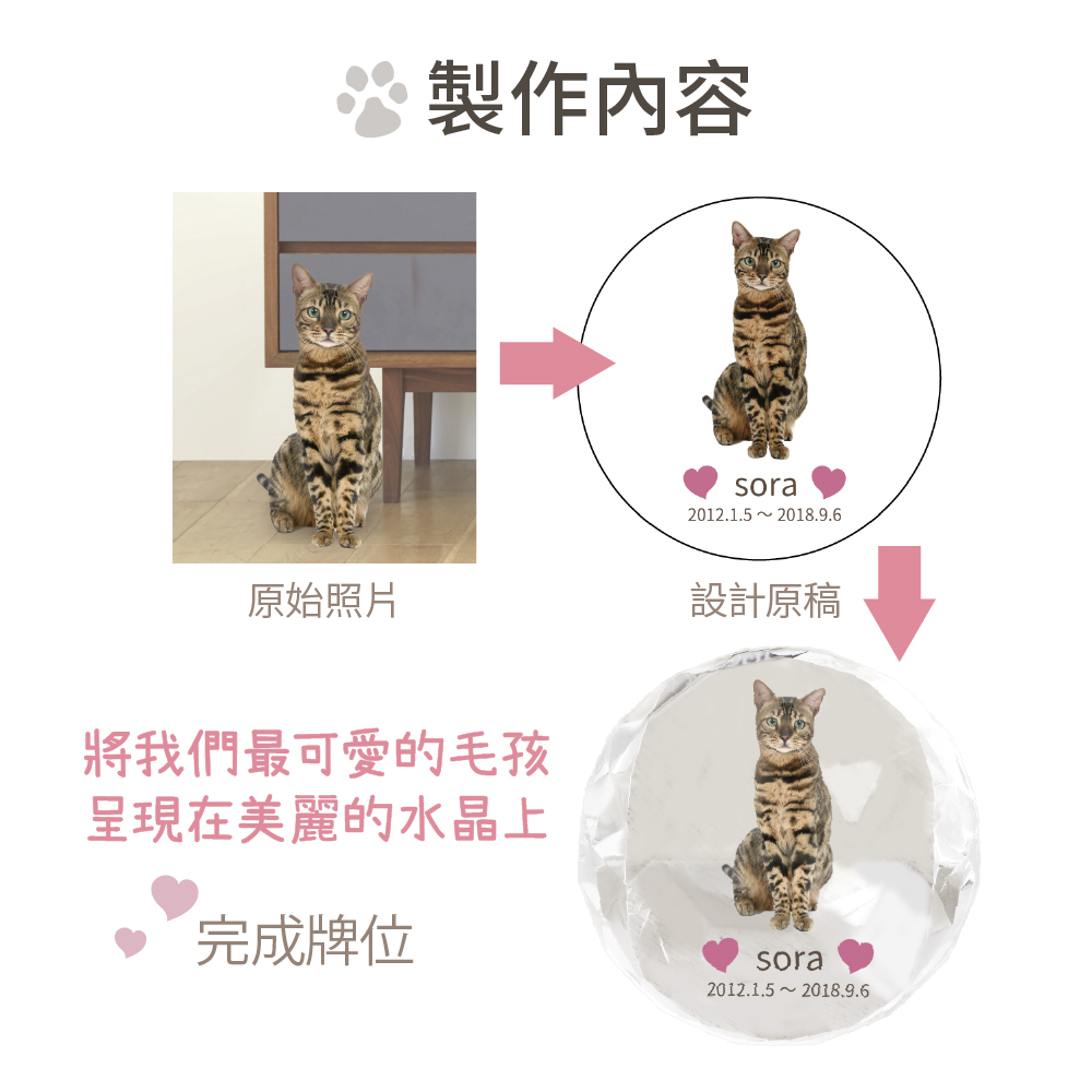水晶牌位就像是毛孩的化身一樣,是牠曾經存在過的證明